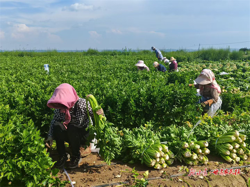 時下,走進崇信縣黑河川區,連片的芹菜基地里,翠綠的芹菜長勢喜人,工人們正忙著采收、分揀、裝車,一派繁忙景象。